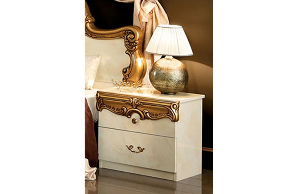 Description This traditional Barocco style Bedroom Set consists of Queen Size Leather Panel Bed, 2...