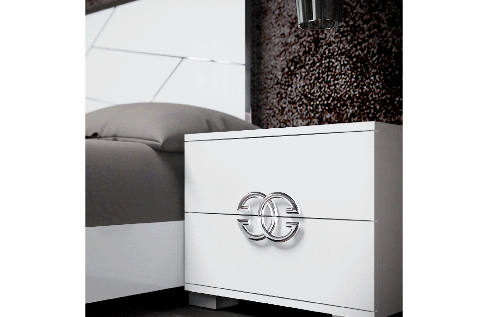 Description Stylish White High Gloss Finish Bedroom from Italy.Nightstand /Dresser and Chest - soft close...
