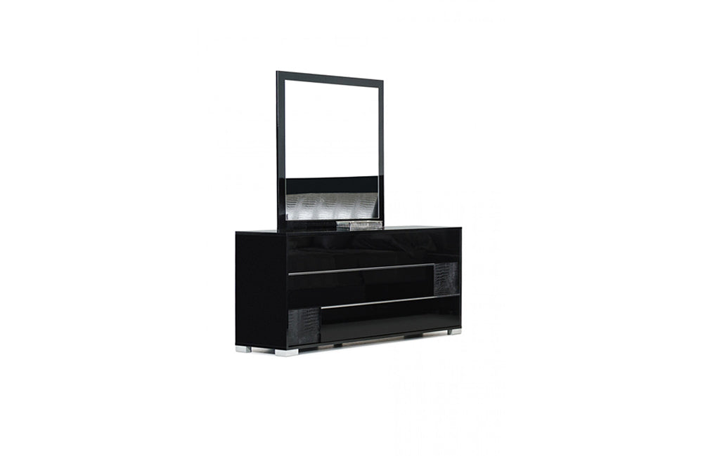 Description Black Gloss and Beige Crocodile Textured Eco-Leather Stainless Steel Accents Made In Italy Dresser...