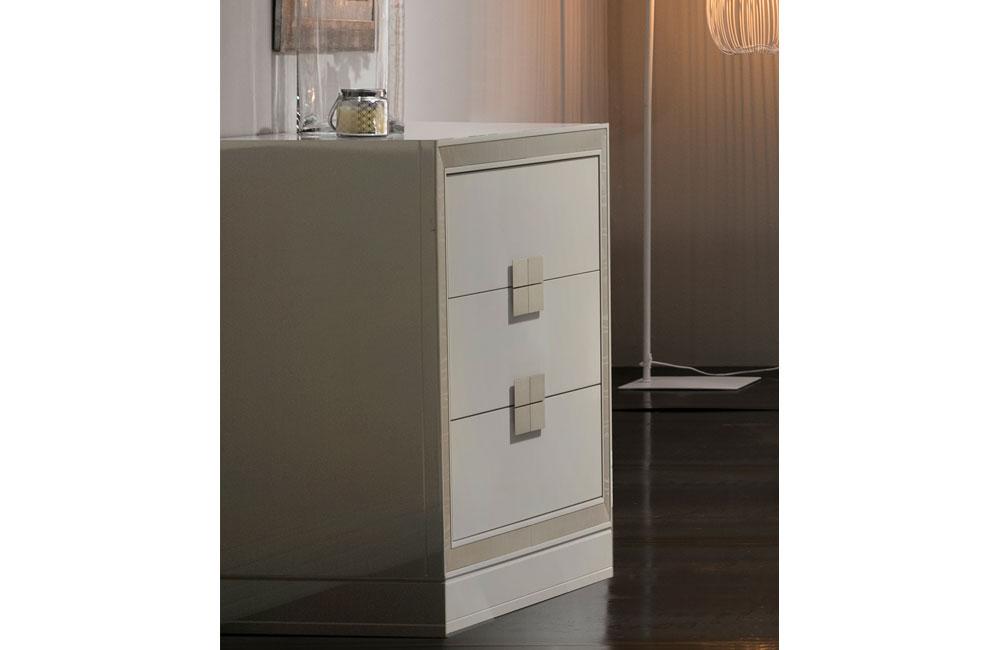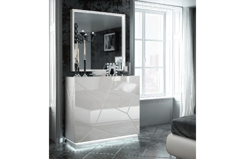Description Modern Single Dresser in White Finish.Finishes: White Matt carcas / Fronts High Gloss / Fabric white...