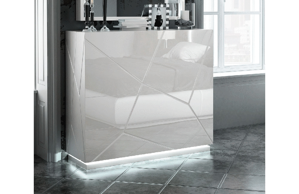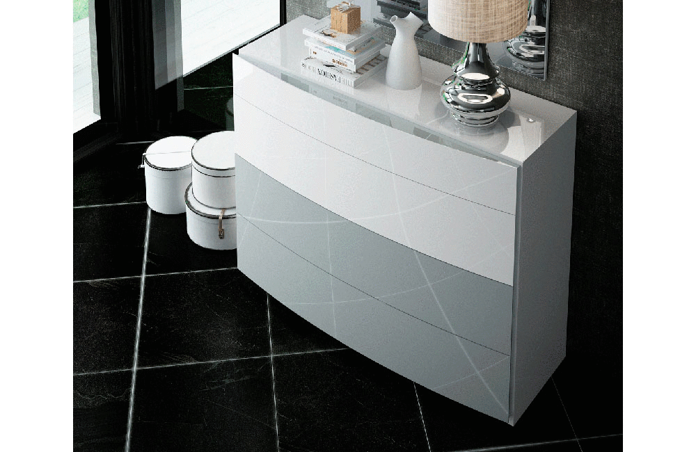 Description Modern Double Dresser in White Finish.Finishes: White Matt carcas / Fronts High Gloss / Fabric white...