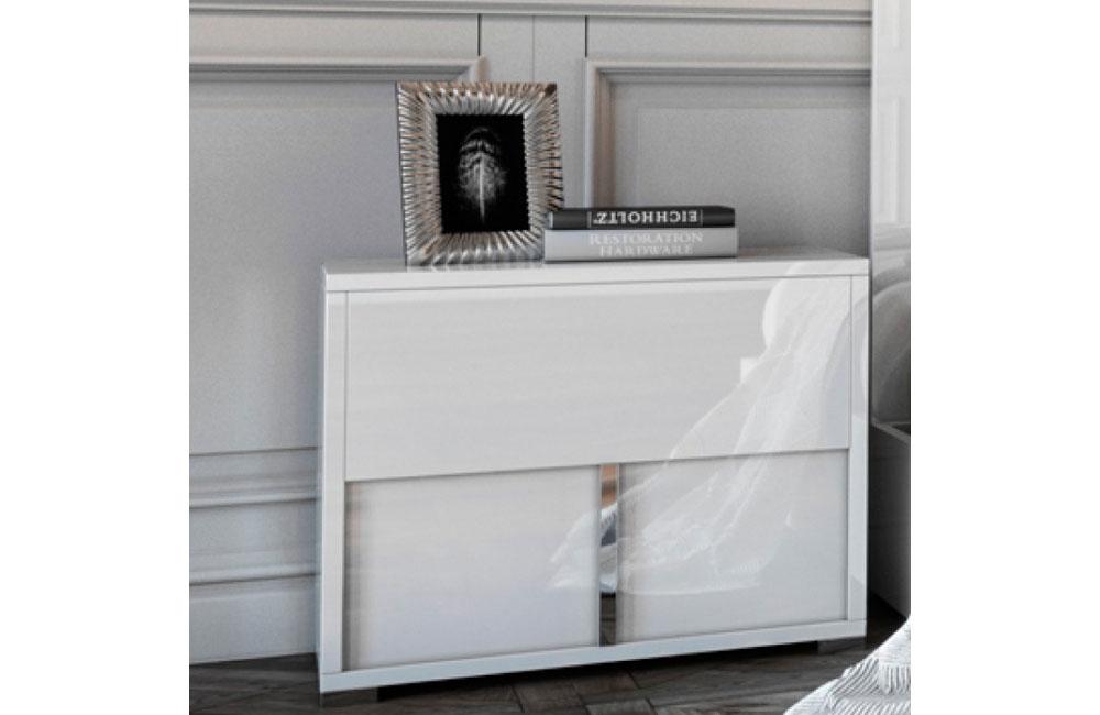 Description The Monica modern white gloss 2-drawer nightstand exhibits elegance featuring two drawers with inner...