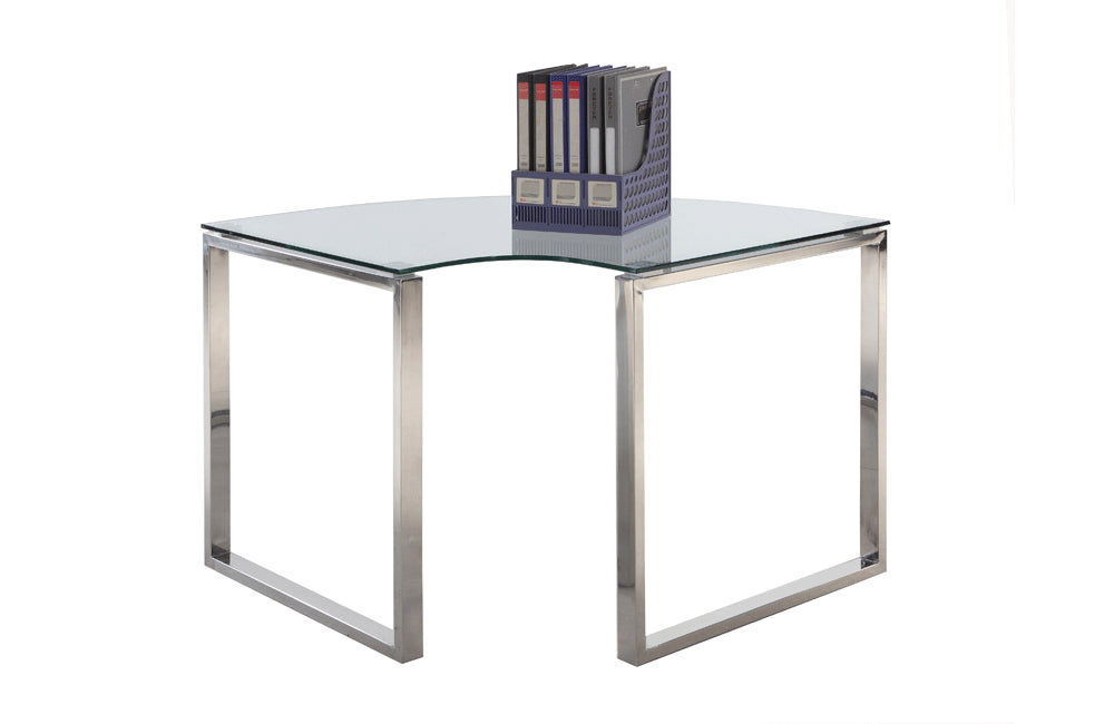 Description Modern glass and steel office rounded corner desk, Ideal choice for home office, Stylish...