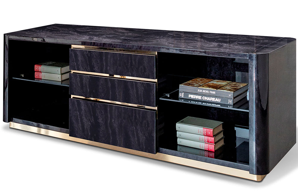 Description Frame: Brass Structure: Veneer in Wenge Finish 3 Soft Closing Drawers Weight Capacity: 154...