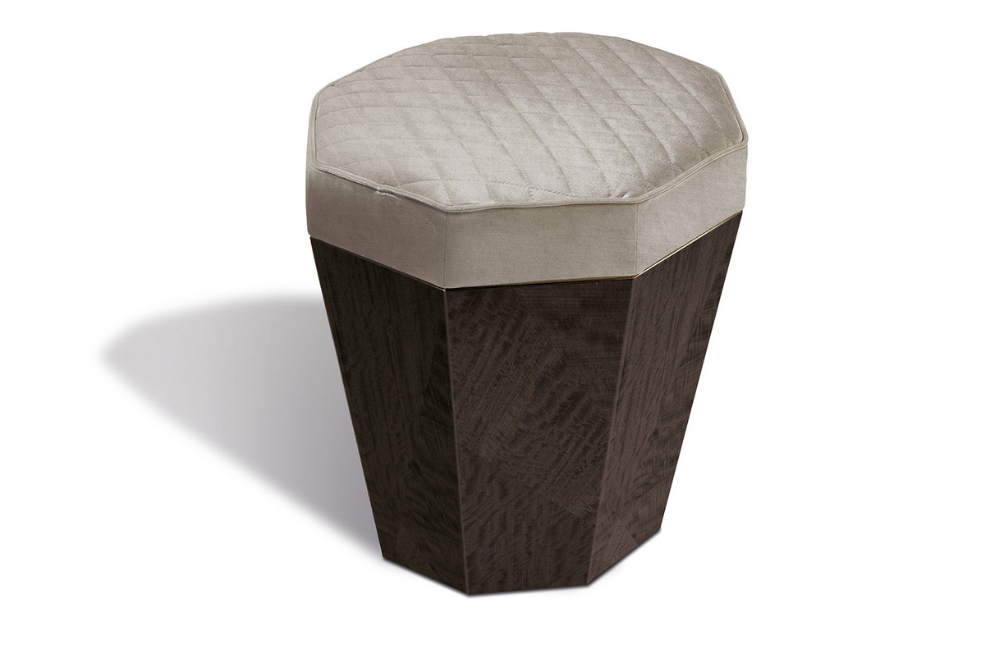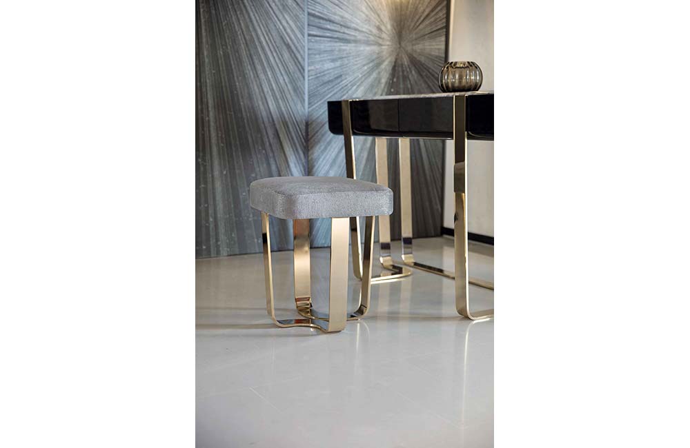 Description Ottoman for vanity desk available in leather, nubuk, leather, suede fabric.Legs in light gold...