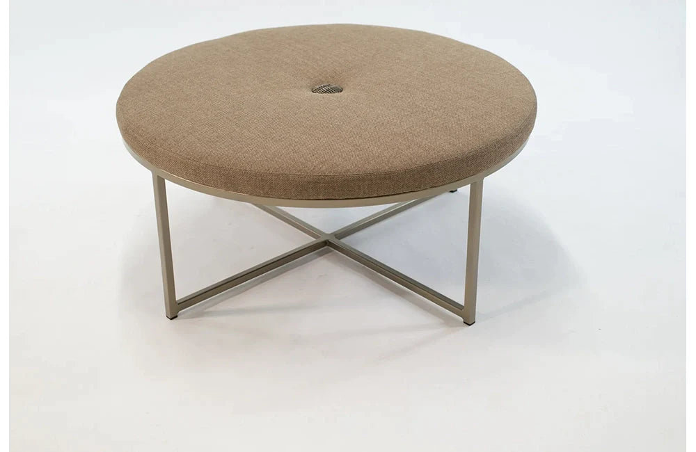 Description Round Ottoman Upholstered in Leather Color:Camel M2895-K/S Powdered Coated Iron Base No Assembly Required...