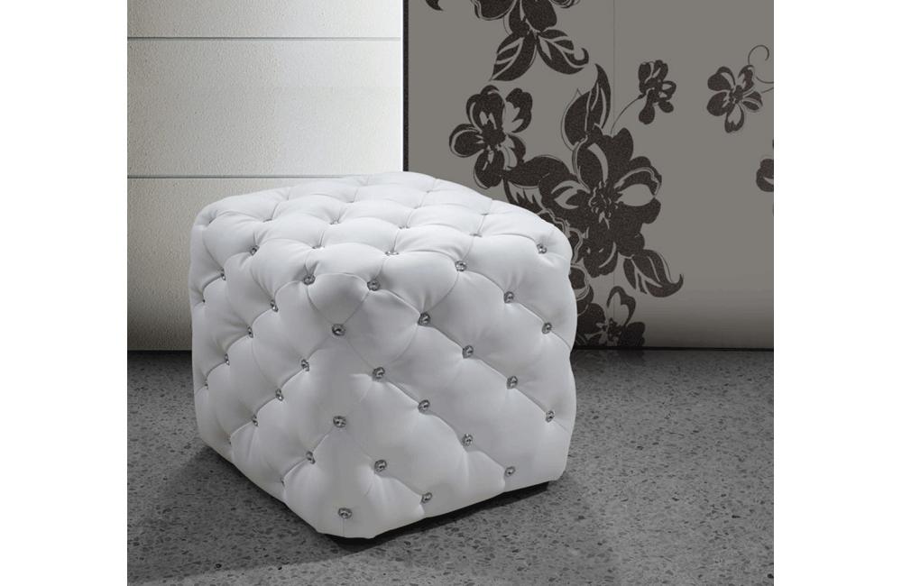 Description White leatherette pouf with tufted artificial crystals.Available also in Black Dimensions Width 18" x...