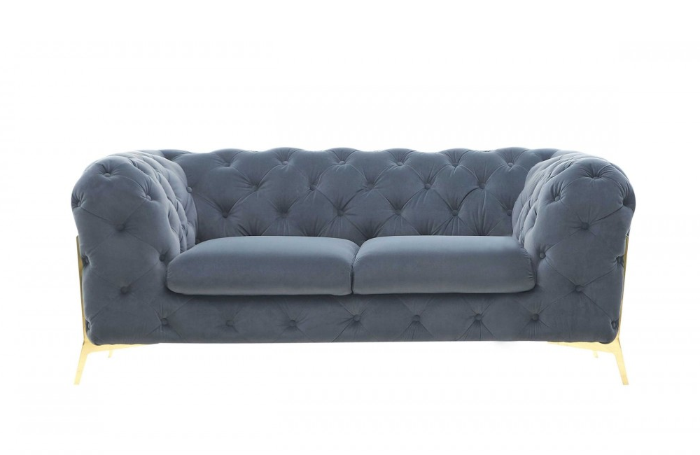 Description Upholstered in Velour FabricColor: Dark Grey Tape 96Tufted Seat Backs with ButtonsTuxedo ArmGold Metal...