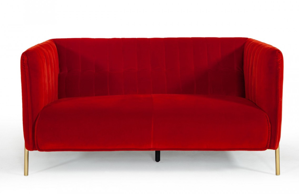 Description Upholstered In Velvet FabricColor: Red-Orange F-165Gold Metal Legs Dimensions W62" x D35" x H32"Seat...