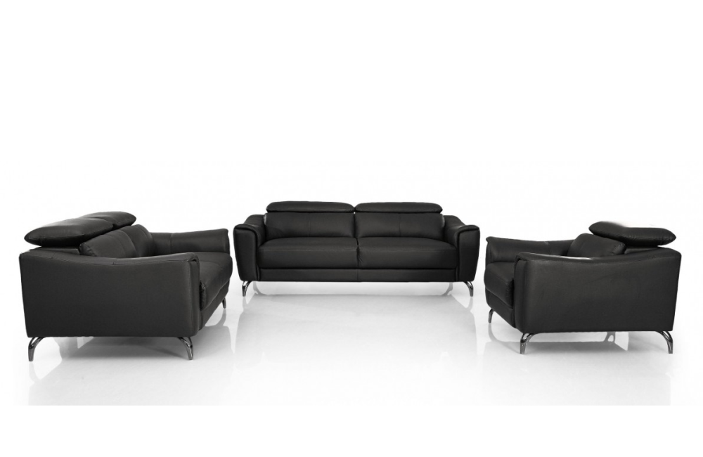 Description Set Includes: Sofa, Loveseat & ChairUpholstered in Top Grain LeatherColor: Black A16Metal Legs5 Adjustable...