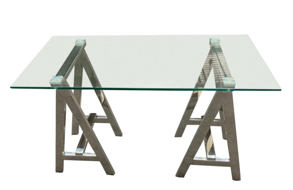 Description 12MM Tempered GlassStainless Steel Sawhorse Style BaseRectangular ShapeWeight Capacity: 300 lbsSome Assembly Required Dimensions...