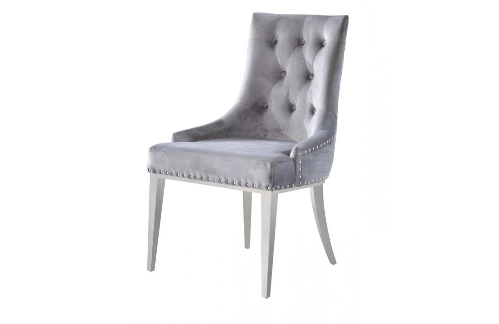 Description Upholstered in VelvetColor:Grey Velu-97ATufted Seat BackStainless Steel LegsStudded with NailheadsSeat Back Style:WingbackDecorative HandleNo Assembly...