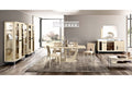 Modern Dining room furniture with an extendable table in Ivory soft color. Ambra Table and Rombi chairs.