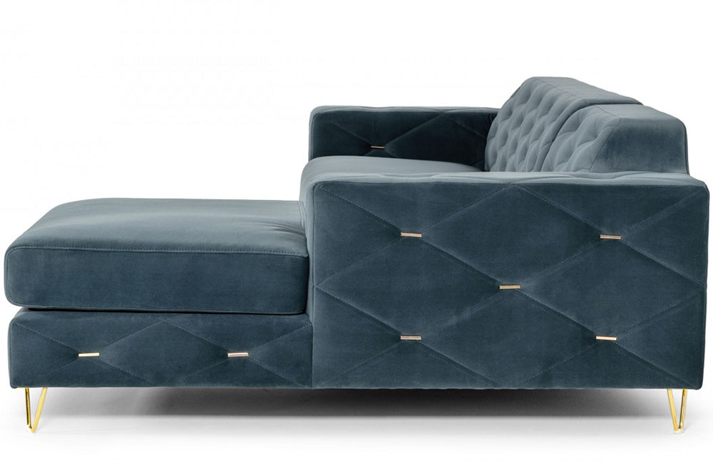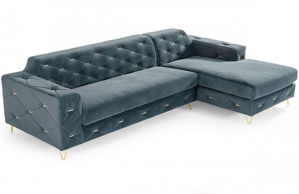 Divani Casa Chesterfield Blue Velvet Right Facing Sectional Sofa