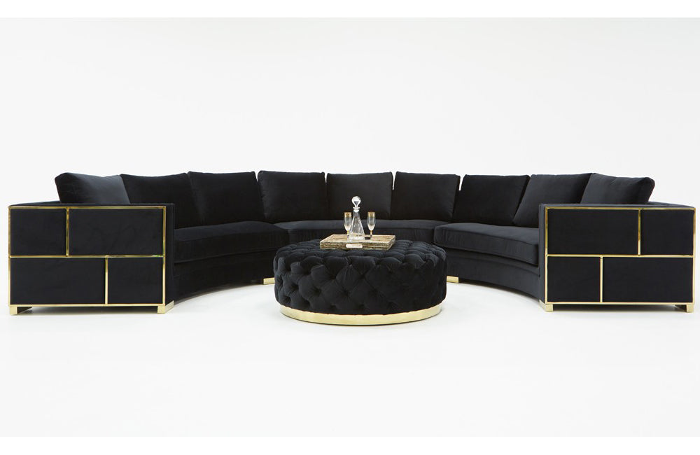 Divani Casa Ritner Modern Black Velvet Curved Sectional Sofa