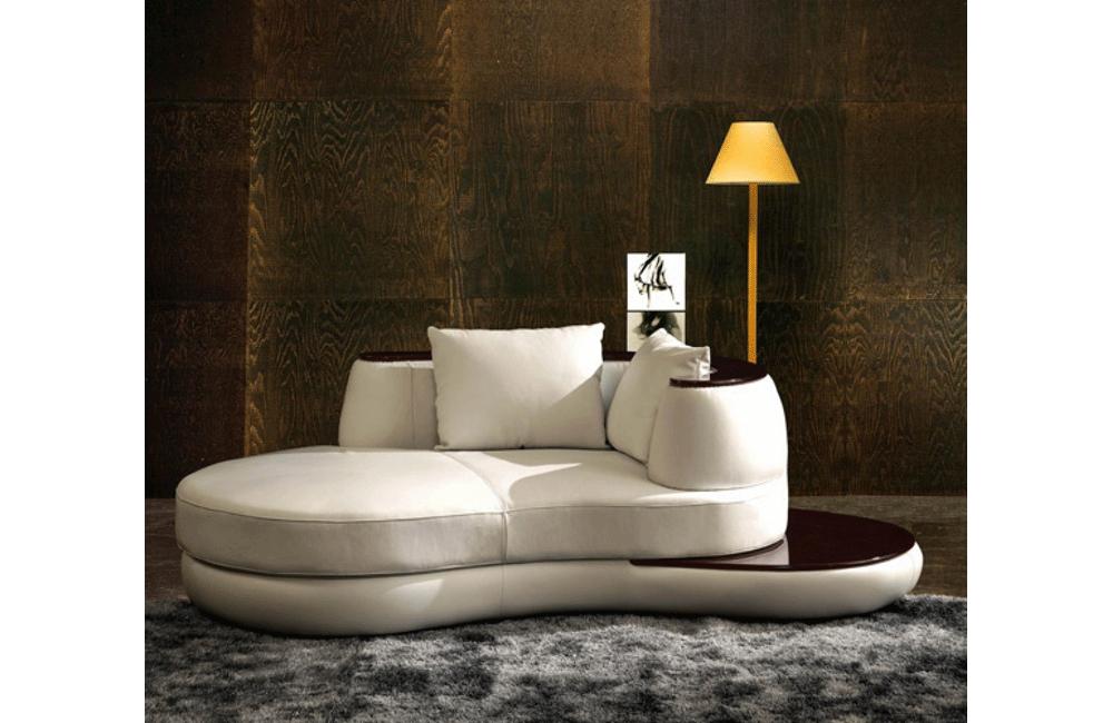 Description SPECIAL ORDER ONLY ! Rodus Rounded Leather Chaise with Wood Trim offers a comfortable...