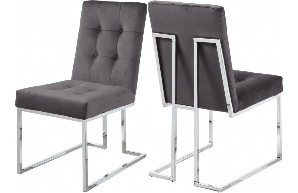 Description Dine in sophistication and elegance when you're seated in this Banner Grey velvet dining...
