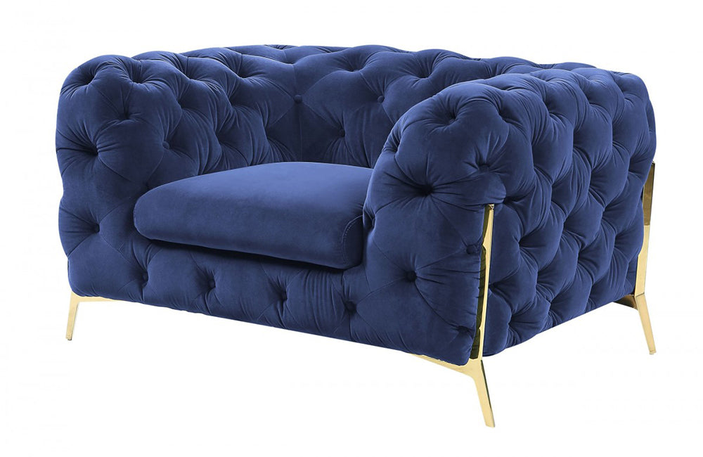 Description Upholstered In Velour Fabric Color: Blue JY1066-55 Tufted Seat Backs With Buttons Gold Metal...