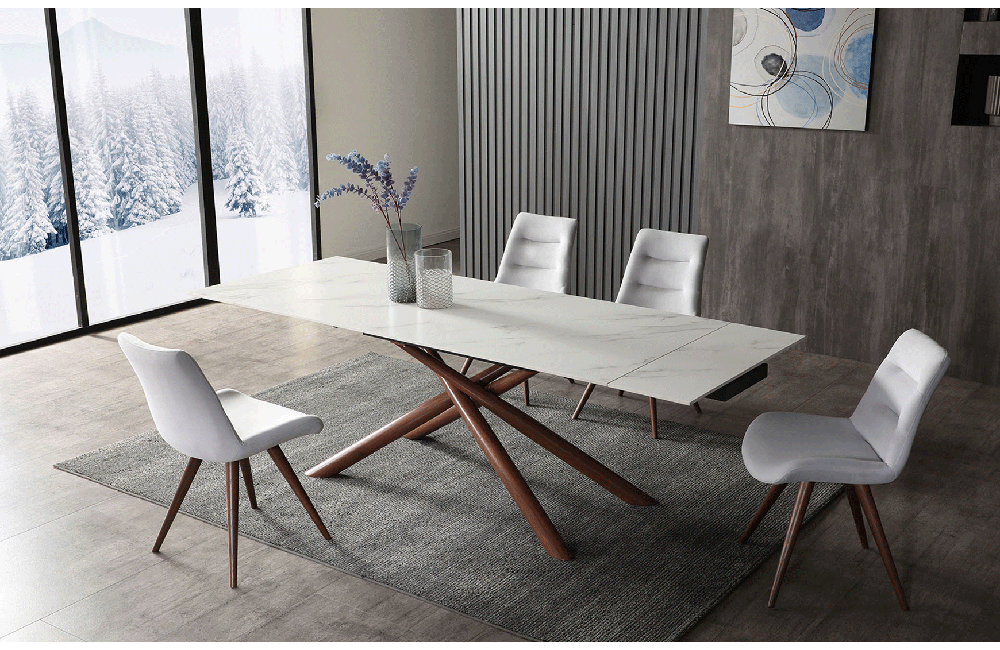 Contemporary extendable 9063 Dining Table with matching 1313 Chairs.