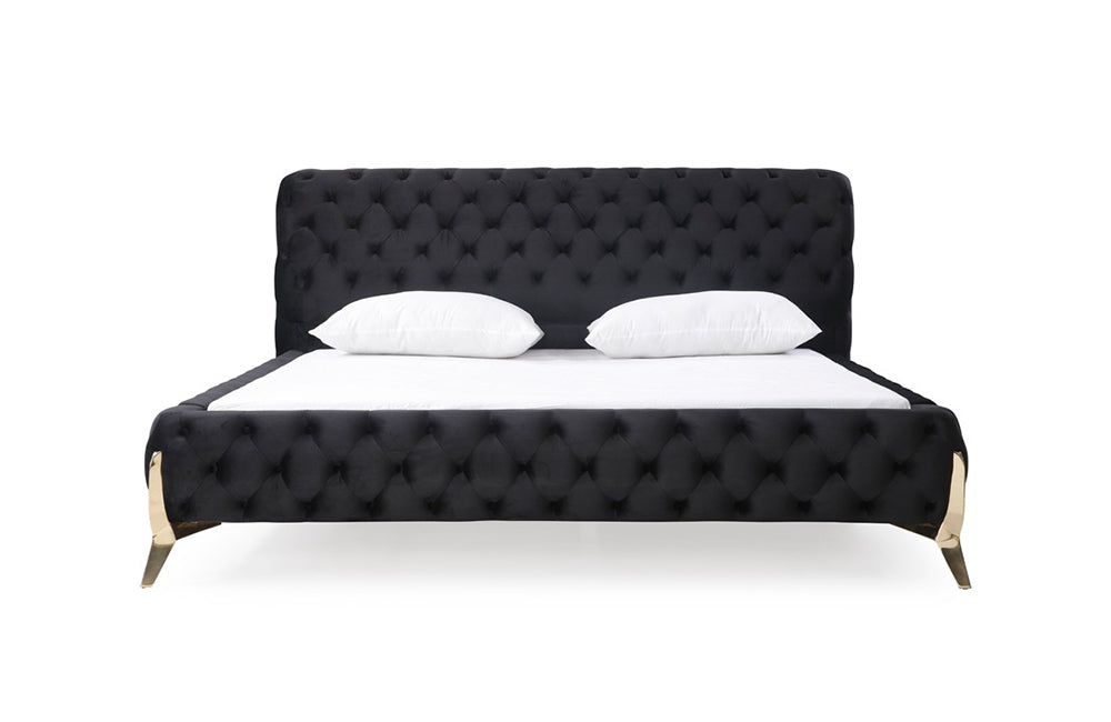 Description Upholstered In Black Velvet Fabric Diamond Tufted Gold Stainless Steel Legs Slats Included -...