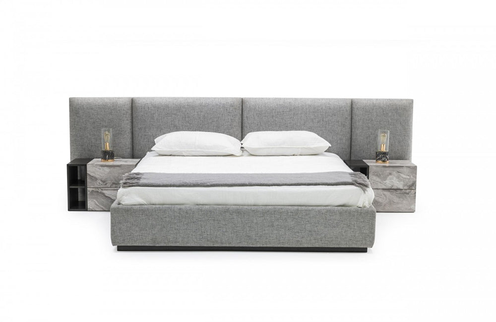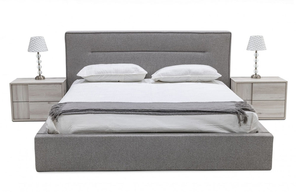 Nova Domus Maranello Modern Grey Fabric Bed w/ Two Nightstands