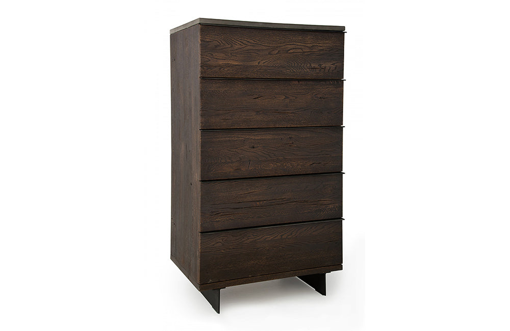 Description Dark Oil Stained Solid Aged Oak Grey Concrete Top 5 Soft Closing Drawers Black...