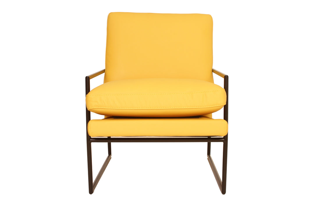 Description: Munich yellow leather modern accent chair. 100% Top Grain Leather all around. Stylish and...