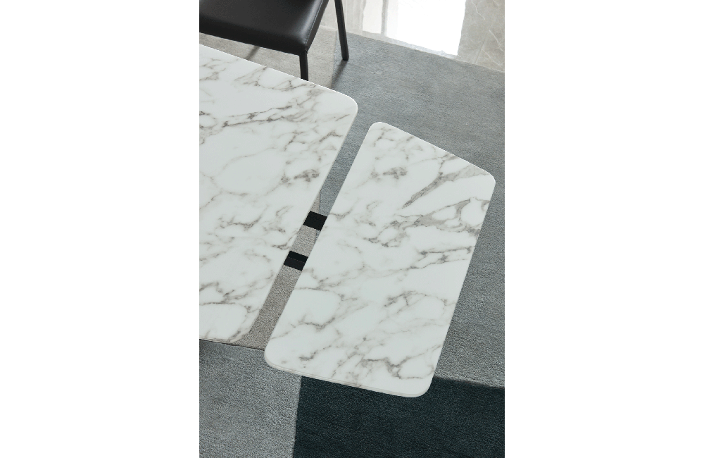 Table : central top is artificial marble based on natural marble; Leafs: glass closed by marble paper.