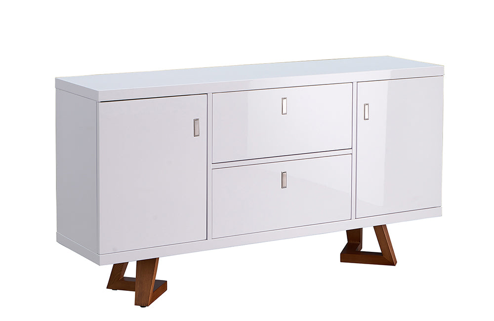 This Dining Set offers a contemporary approach in design. Durable wooden construction combined with rich high gloss finish give this set its ultra modern exterior while the white color of the set adds a touch of the elegance. The Dining Set consists of: Dining Table, 6 Side Chairs and Buffet