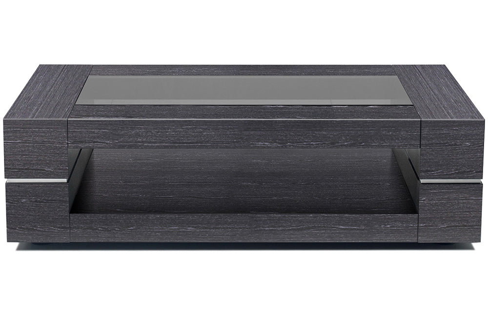 Beautiful modern coffee table with durable veneer. Gray tempered glass on top. Goes well with any kind of decor. Available in a grey color.