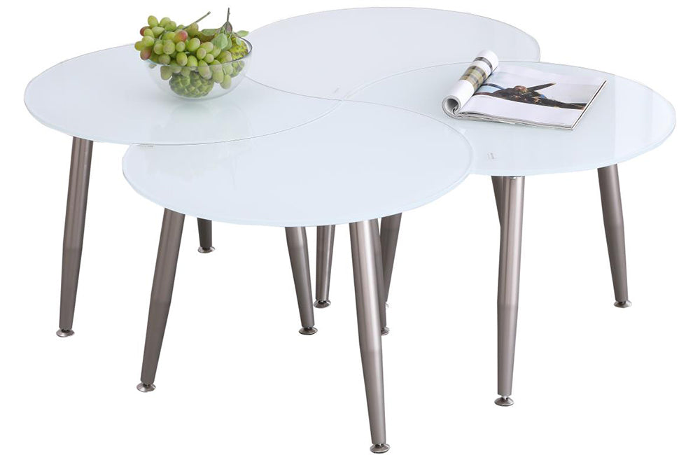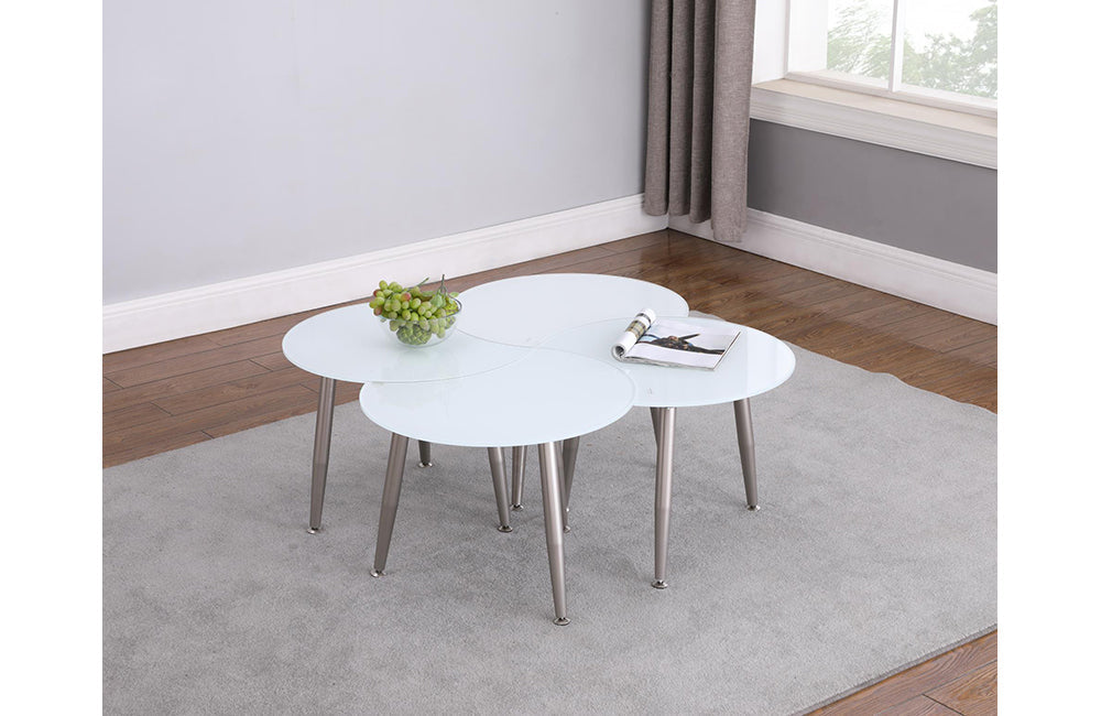 - Detail Description: Contemporary Shaped-Top Glass Cocktail Table