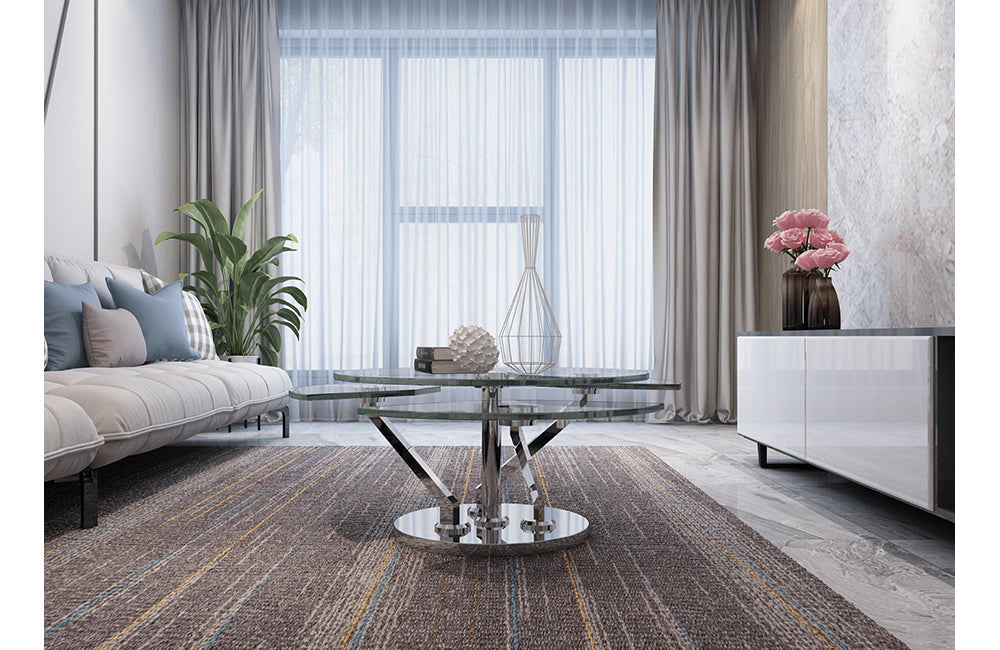 - Detail Description: Contemporary Cocktail Table w/ Glass Top & Motion Shelves