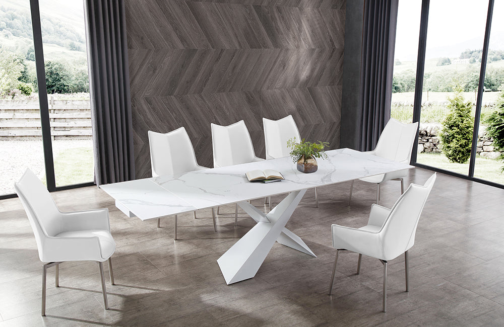 Extendable White Dining Table perfect for everyday and entertaining use.