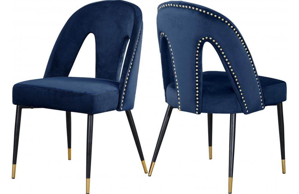 Elegant and eye-catching, the stunning navy velvet Aada Dining Chair from Meridian Furniture is the perfect addition to any space.