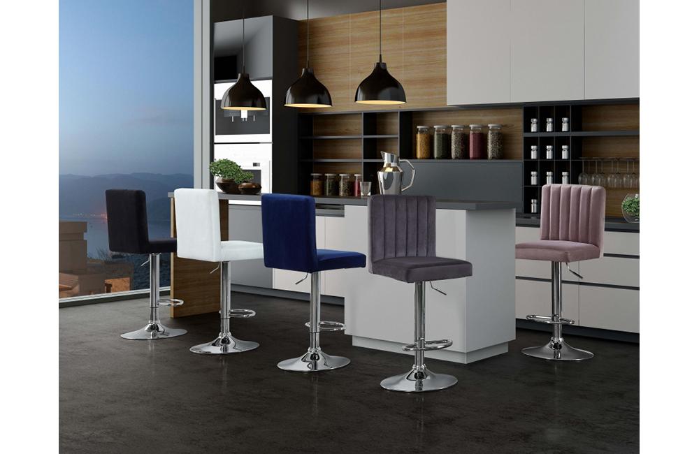 If sleek, modern style is your goal, you can't go wrong with this Abejundio Velvet Adjustable Stool. The slant-back design puts your body at just the right angle for sipping a frosty one at the home bar, and the rich velvet upholstery adds to the overall comfort factor of the stool. Button-tufting gives an added detail to draw the eye, and the stool rests on a chrome finished base for a burst of contemporary panache. Adjust the seat height by flicking the lever under the seat for personalized sitting comfort.