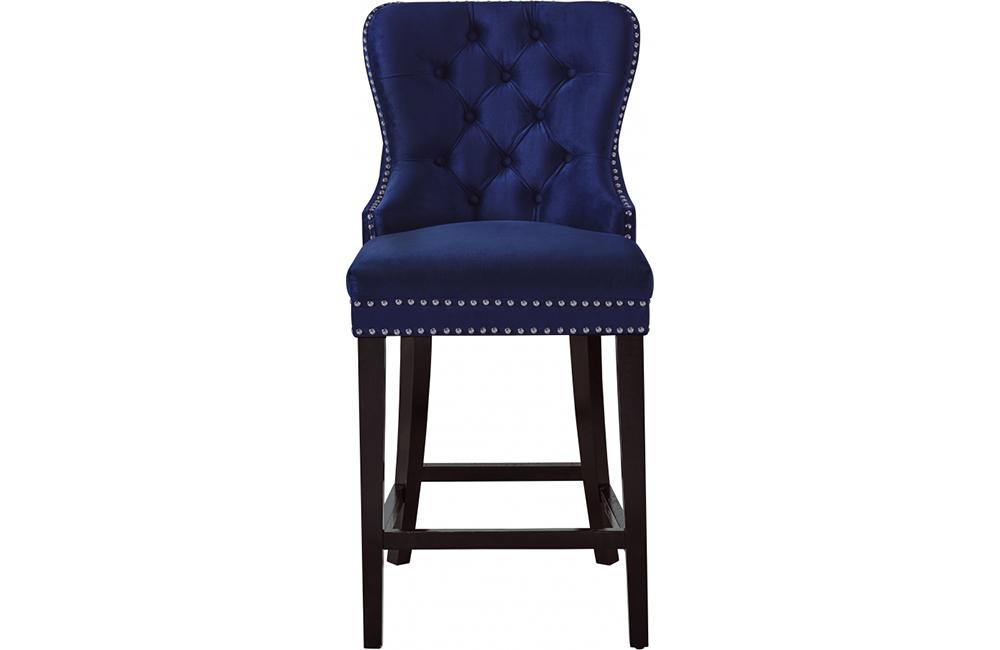 Lounge in luxurious style with the Abella velvet counter stool. Featuring a curved high back, plush cushioned seat and deep tufted black velvet upholstery studded with chrome nailheads, this counter stool is sure to take your dining experience to a whole new level. Espresso wood legs provide sturdy support and complement the stunning pink upholstery for a sleek, contemporary design.