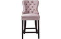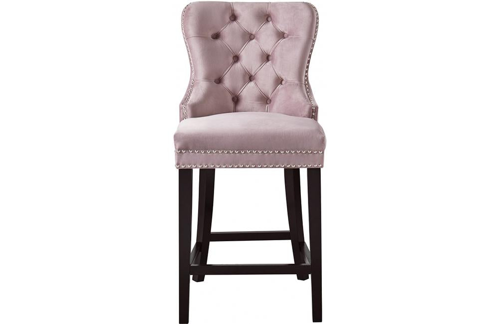 Lounge in luxurious style with the Abella velvet counter stool. Featuring a curved high back, plush cushioned seat and deep tufted black velvet upholstery studded with chrome nailheads, this counter stool is sure to take your dining experience to a whole new level. Espresso wood legs provide sturdy support and complement the stunning pink upholstery for a sleek, contemporary design.