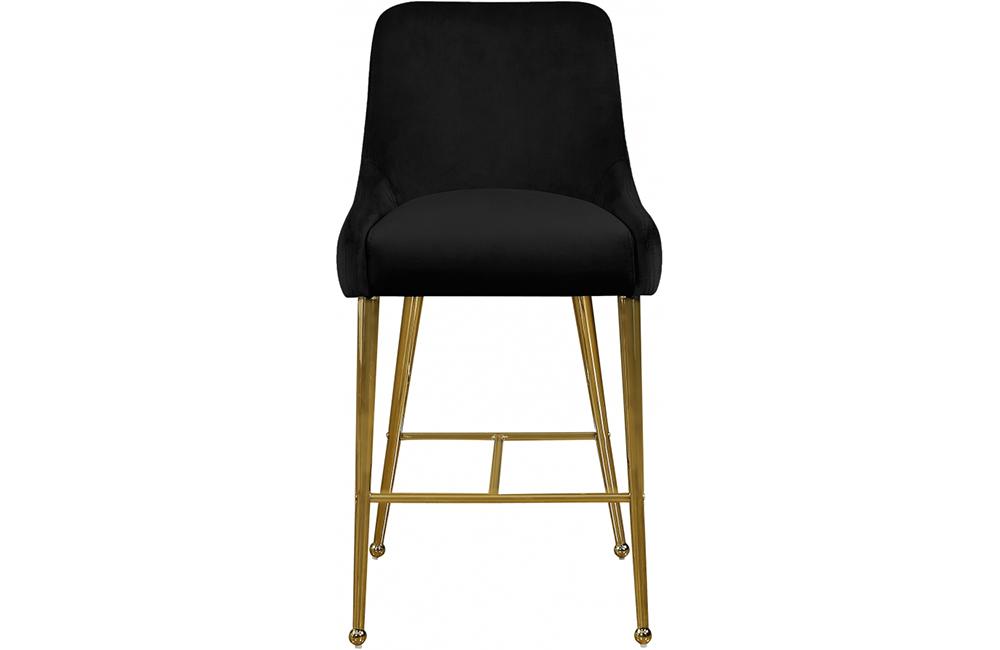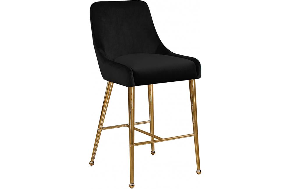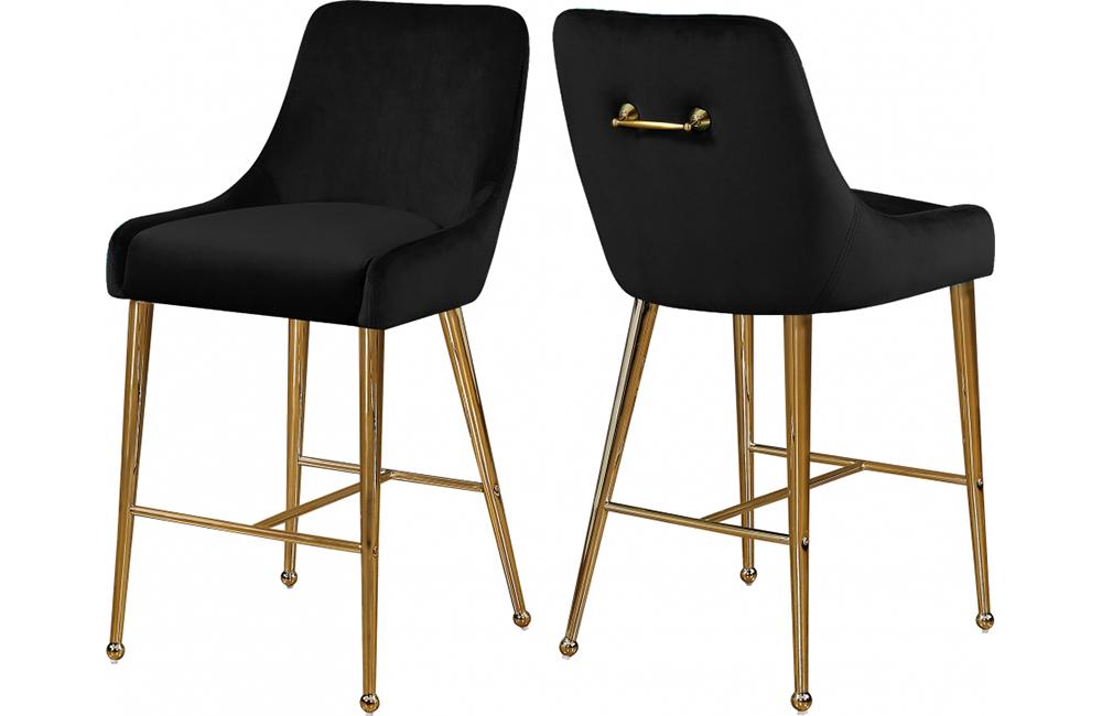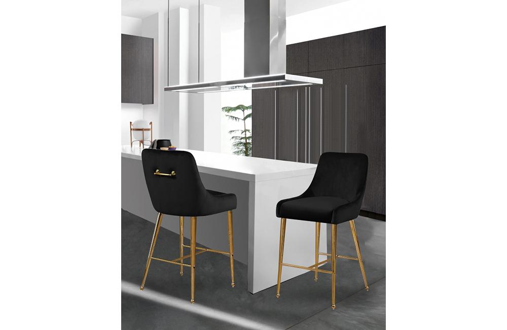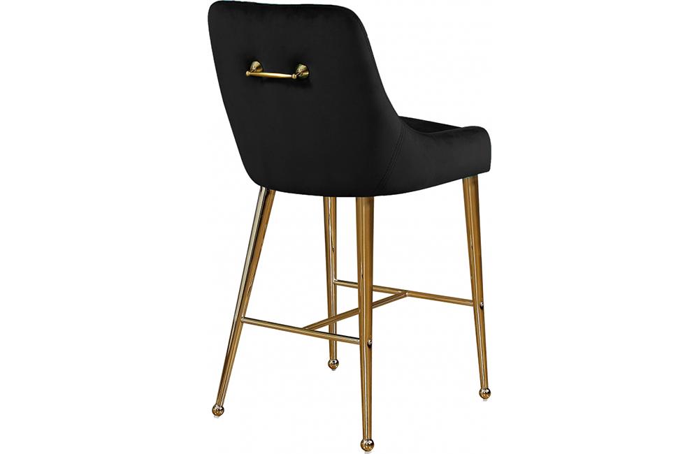 The home bar or kitchen counter gets a contemporary makeover with the addition of this Abhainn Velvet Stool. Clean lines and a simple design make this stool nothing short of elegant. The black velvet upholstery is sleek and svelte to the touch, revving up the comfort factor of this stunning stool. The polished gold legs have a ball design that's both modern and sophisticated, while a matching handle on the back adds to the overall modish feel of this delightful stool.