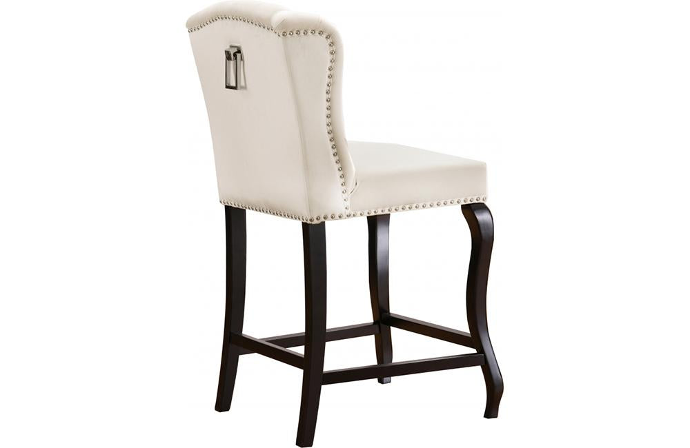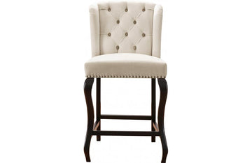 Rest easy on this Suri Velvet Stool, which blends modern design with timeless design elements for a look that wows. This handsome stool has a softly padded seat and back to ensure your absolute comfort while you dine at the kitchen counter or relax with a cocktail at the home bar. The plush cream velvet upholstery is soft to the touch and sleek against your skin, and the turned legs and wooden frame add a chic traditional vibe to your room.