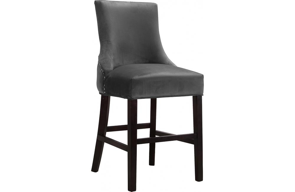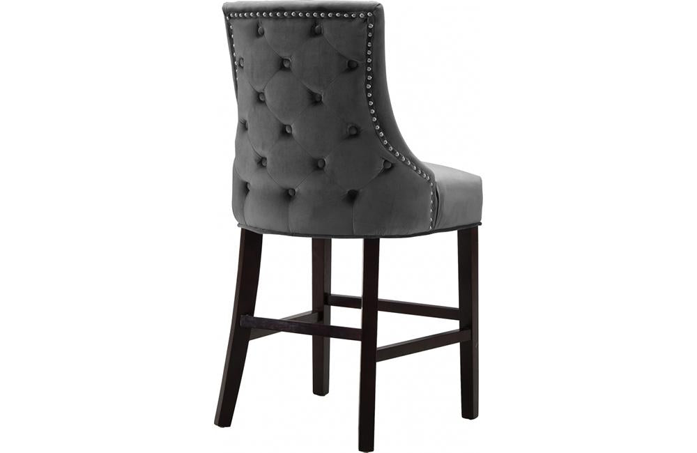 Add this Abri Velvet Stool to your home bar or kitchen counter to seat guests comfortably and in chic fashion. The black velvet upholstery is thick and durable and has a slight sheen for a touch of glam. The back of the seat has deep button tufts for a posh look, while the front features smooth velvet upholstery for sleek comfort. The base is made from wood with an espresso finish and has a foot rail for extra support and comfort as you sit.