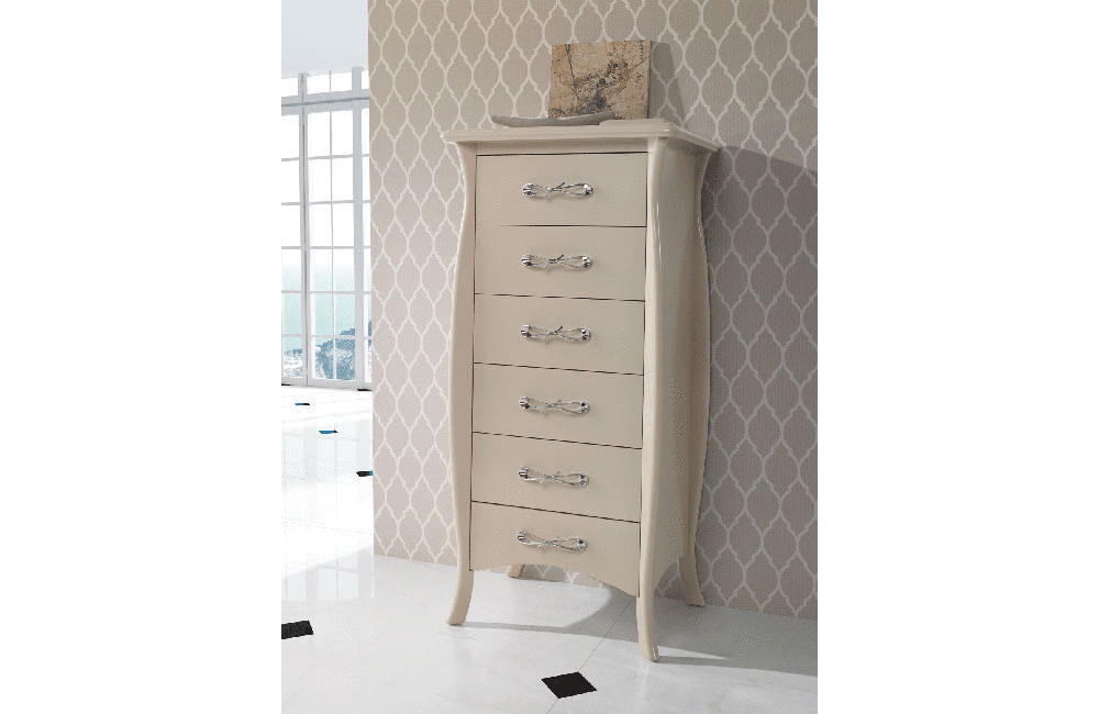 Modern Bedroom Chest made in Spain. Microfiber upholstery, Ivory color.