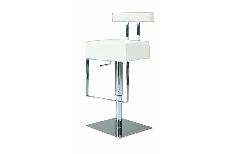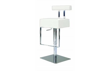 This is a contemporary brushed stainless steel adjustable height swivel stool with Adjustable gas lift. Seat height adjusts from 21-29". It features a thick comfy seat cushion and upholstered backrest. Covered in easy-care PVC vinyl, simply wipe any spills with a damp cloth. Your choice of Black or White PVC.