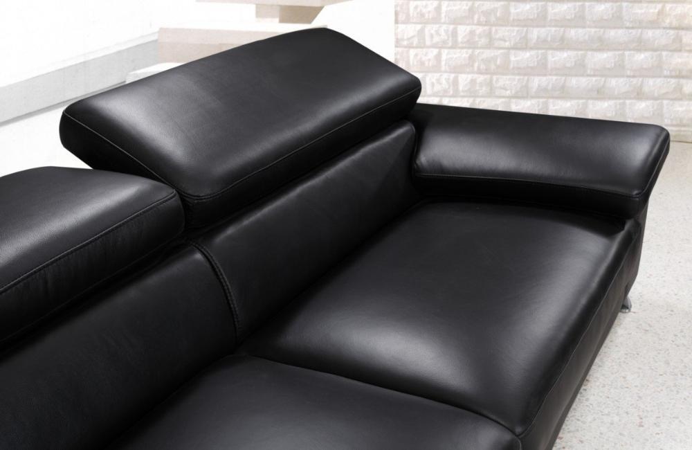 Maddison modern sofa set has a sleek minimalist style and a screaming luxury for your living room. Adjustable headrests on all the pieces that will change the comfort level and the design of this magnificent collection. Upholstered in black color full Italian leather it has stainless steel legs and frame. This unique modern sofa, loveseat and chair will transform any space and bring comfort and durability to your home. Available also in Black.