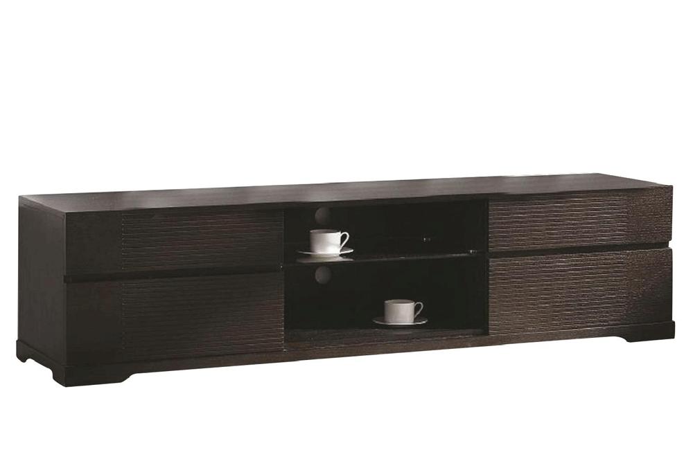 TV Stand with 4 etch face drawers and center glass shelf. Preassembled TV Stand .