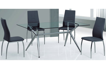 What a sophisticated, graceful and elegant table. Featuring a tempered glass table top to ensure the safety of your friends and family. Simple and sleek side chair.