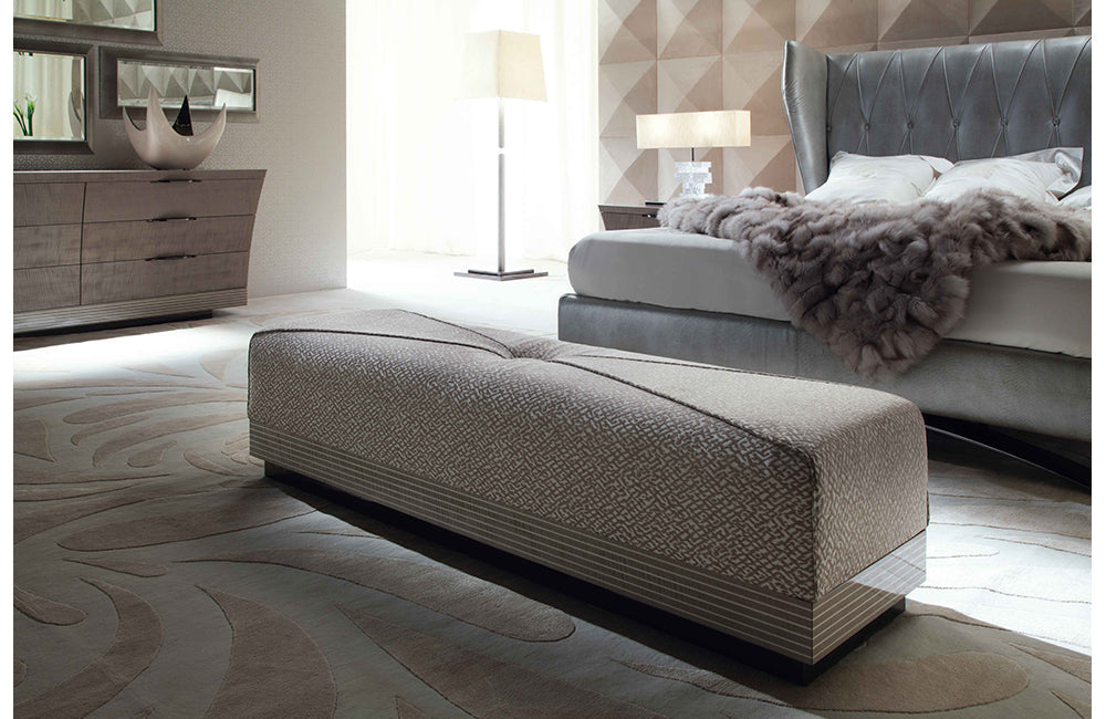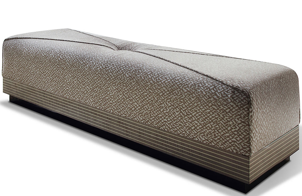 Upholstered bench available in lizard printed leather, first grade leather, nabuk leather, velvet, velour or suede