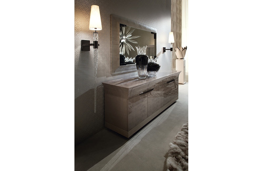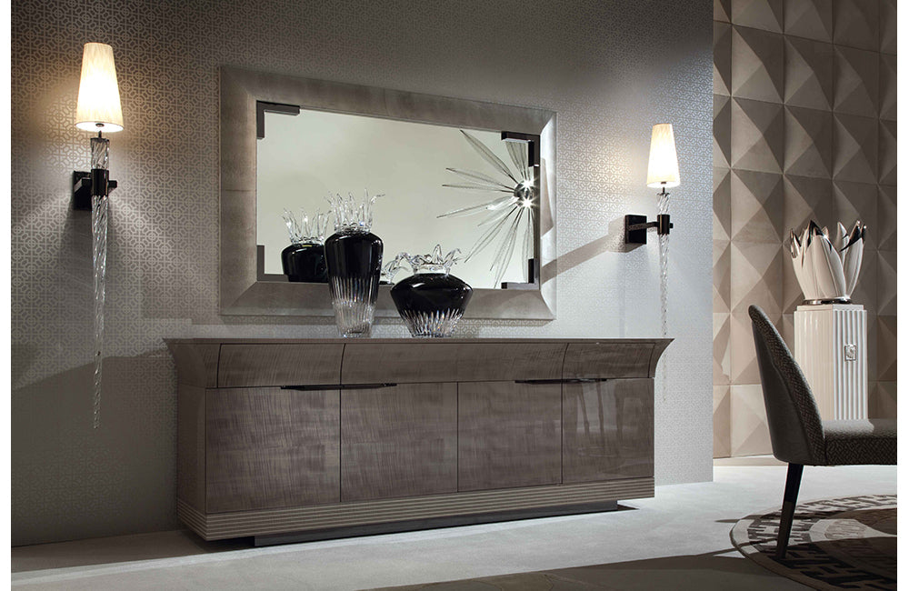 Buffet with 4 doors + 3 full extension drawers w/bottom in silver lizard printed leather in tiger African sycomore