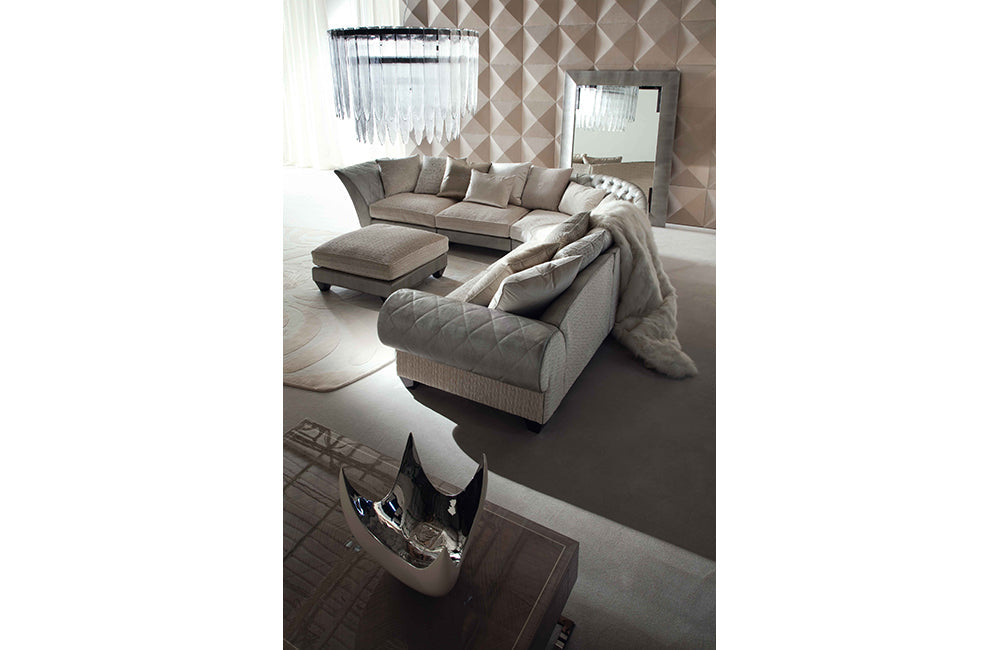 Yoko sectional sofa available in first grade leather, nubuk leather, lizard printed leather, velvet or suede fabric.