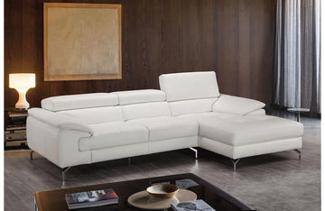A fusion of style, and comfort.This sleek design is sure to add spice to any decor while maintaining a modernistic clean design. Beautifully crafted from premium grade thick Italian leather and features 3 independent ratchet headrest. Available in white Italian leather. The Aleah is definitely another winner by Aleah Furniture. This set can be special ordered in many different colors.