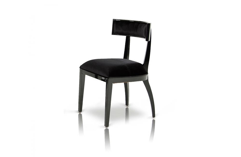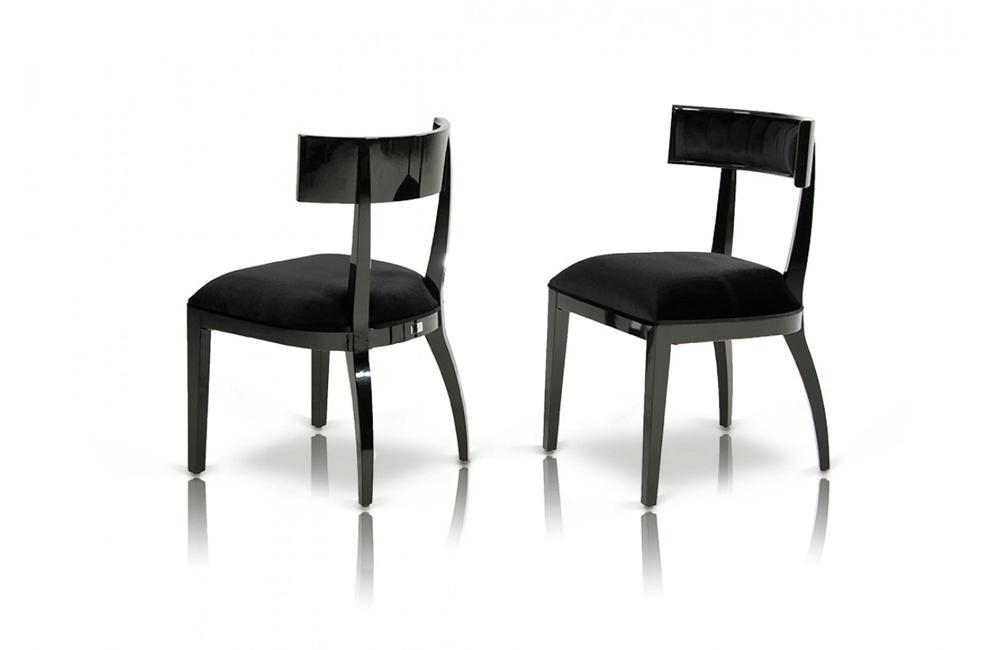 Alek Modern Black Dining Chair features thick fabric cushioned seat and a curved upper back rest with equidistant rectangular lines.This comfortable dining chair is ideal in any room setting.